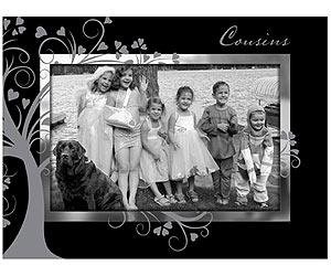 picture frames / photo frames : A special COUSINS keepsake frame to share and cherish. Great for family reunions or just plain gift giving that will be treasured A stylized tree adorn this very pretty piece. Bevelled to create a very attractive desk piece. Glare resistant glass lens. Attractive hardboard backing. Crafted expressly for SendAFrame by Malden.