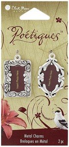 Poetiques is a collection of inspiring contemporary message jewelry with artistic flair. Each piece includes a tiny love note, karmic solace, and an inspirational word or graphic image. Pendants, charms, and connectors added to a simple leather cord will form unique jewelry that will amuse and inspire! This package contains 2 silver metal photo frame charms. Available in a variety of designs, each sold separately.
