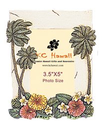 Poly Photo Frame / Palm Tree & Flowers / 3.5"x5"