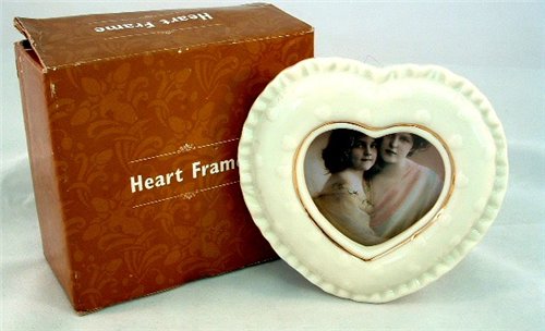 Porcelain heart photo frame, size- 4.5" x 4.5", holds 2.5" x 2.5" photo.