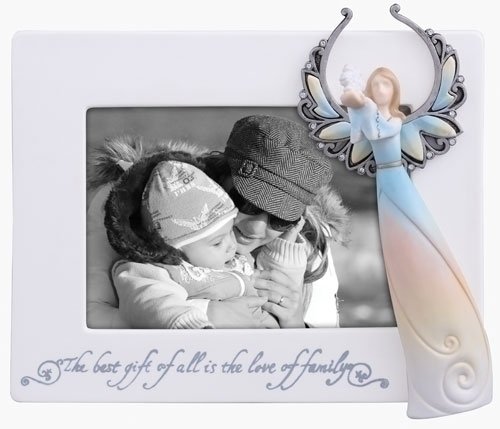 Frames feature an angel holding a snowflake and has the phrase "The best gift of all is the love of family" printed on them